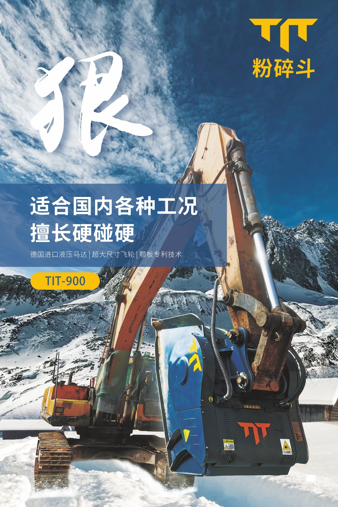 TIT,源自Titan的縮寫,原指古希臘神話中力大無窮的威猛之神,借意本產(chǎn)品剛勁有力,產(chǎn)能高效。TIT粉碎斗,也稱破碎斗,顎式破碎斗,是一款創(chuàng)新型挖掘機(jī)屬具,掛于挖掘機(jī)大臂上,可快速將工程惰性材料破碎成極具價(jià)值的工程用料。隨著國內(nèi)基建行業(yè)展,基于市場對經(jīng)濟(jì)化、效率化、環(huán)?;牧系拇罅啃枨螅扑槎穼V泛應(yīng)用于多種物料破碎場景。 |